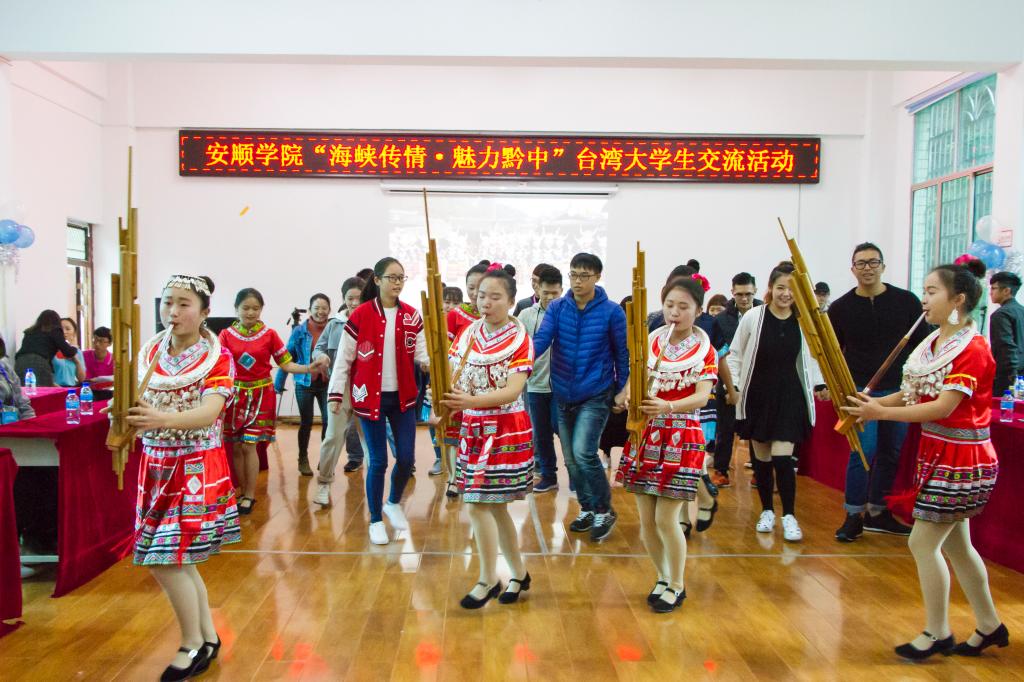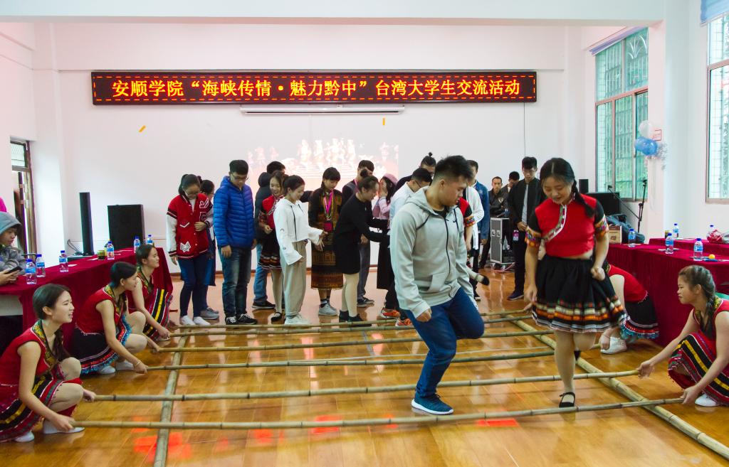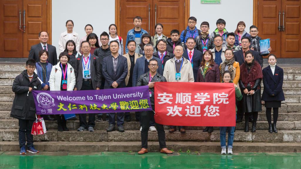 为促进两岸青年学子人文交流,增进了解和友谊,2018年10月18日至19日,由安顺市人民政府台湾事务办公室主办、安顺学院承办,以“海峡传情·魅力黔中”为主题的台湾大学生黔中行高校教育交流活动在安顺学院举行。安顺学院副校长令狐荣涛,安顺市台办主任薛奎及相关负责人,安顺学院党政办、宣传部、对外交流与合作处、教务处、团委、贵州省屯堡文化研究中心、大学生创新创业中心、后勤处、保卫处、体育学院、电子与信息工程学院、农学院、旅游学院、艺术学院相关负责人以及部分赴台交流学习的教师、学生代表,台湾大仁科技大学行销与流通管理系系主任李耀奎、资讯与娱乐科技系主任潘业忠、文化创意研究所所长何晓晖、生物科技系主任洪堂耀、休闲暨餐旅学院副教授李宜锡、国际处副执行长曾善仁以及来自资讯应用与管理系、餐旅管理系、休闲运动管理系的10名学生代表参加活动。