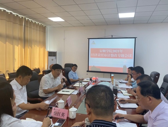 2021年9月27日下午,陈云坤院长在安道楼第二会议室主持召开“安顺学院2021年经济责任审计整改专题会议”,党委副书记陶文彩、副校长郭本华、纪委书记蔡红英、副校长张来出席会议,校党政办、审计处、计财处、国资处、基建处、后勤处、学生资助管理中心、继续教育学院主要负责同志及相关人员参加会议。