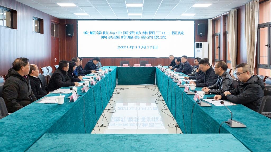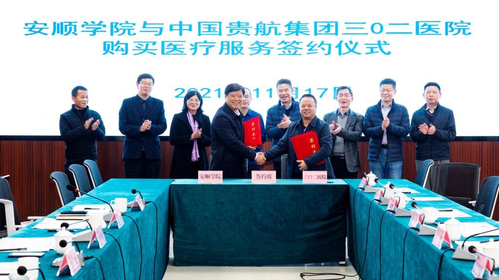 11月17日,安顺学院与中国贵航集团三〇二医院正式签订战略合作协议。中国贵航集团三〇二医院党政领导班子成员吴坚、罗华荣、叶茂、李义、母齐鸣,学校党政领导班子成员罗荣彬、陈云坤、韦英出席签约仪式。