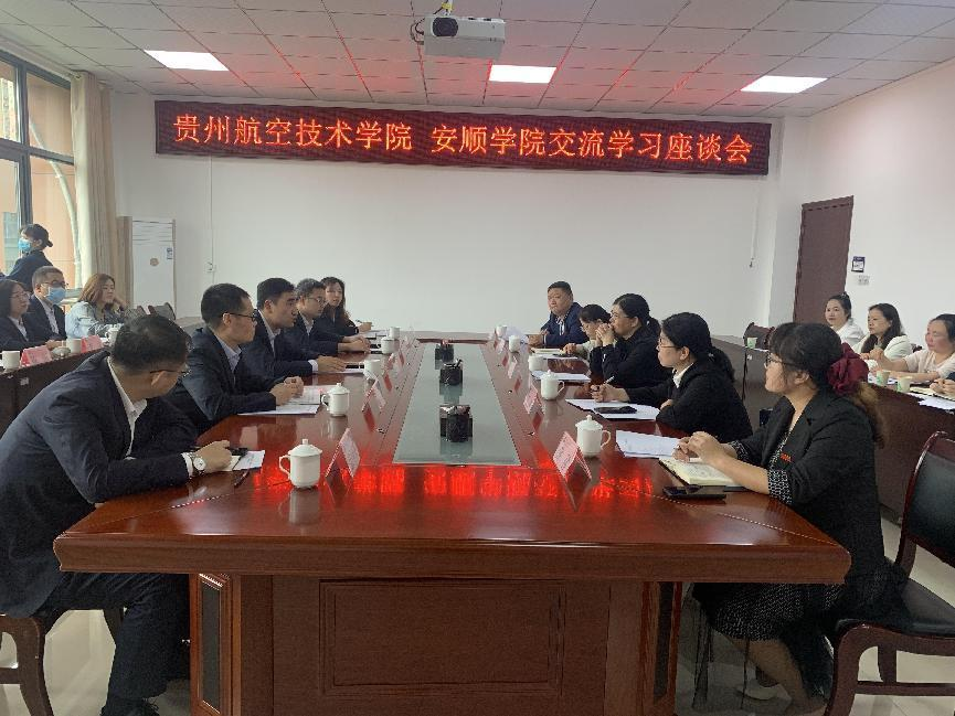 6月10日上午,贵州航空职业技术学院党委委员、副院长蒋凌雪一行到安顺学院就产教融合、学生收费及资助管理等相关工作开展交流座谈。安顺学院党委委员、副校长韦英出席并主持座谈会议,科研处、计财处、学工部、学生资助管理中心等部门负责人及计财处相关业务科室人员参加座谈会。